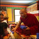 On the afternoon’s schedule was a Thousand-armed Chenrezig initiation. At the start of the session, His Holiness commented that he had just been cautioning the audience at KTD (Karma Triyana Dharmachakra) that it was unwise to offer initiations too easily, yet here he was giving initiation the very next day. However, because the KTC-NJ regularly performs Nyungne, a fasting practice connected with Thousand-armed Chenrezig, the Gyalwang Karmapa said he felt it would be unseemly to refuse their request.